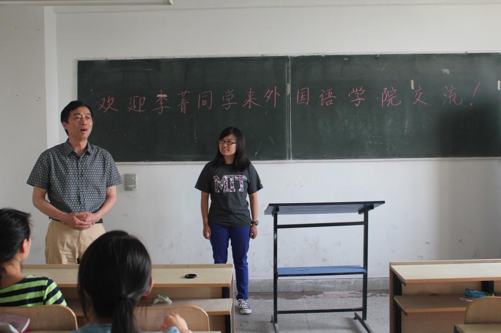 6月3日下午,外国语学院邀请美国麻省理工学院学生李菁在学院会议室与2012级学生开展交流活动。交流会由院长束学军主持,12级学生班主任邵珊珊、辅导员肖婷参与交流。