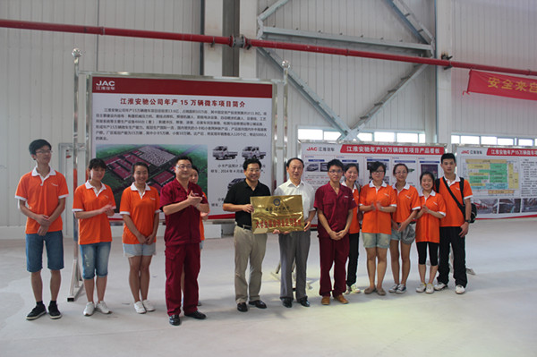 安徽江淮安驰汽车有限公司是蒙城工业化进程飞速发展的典型代表性企业,其年产15万辆微车的项目主要是小卡车和小客车两种,技术源于德国并结合中国消费者的实际情况加以改造,意大利式设计使得江淮安驰的产品简洁大方而实用。实践团一行在企业负责人的陪同下,认真听取了技术人员对15万辆微车项目的详细介绍,参观学习了微车项目的各项产品看板,并在此建立大学生就业创业见习基地。
