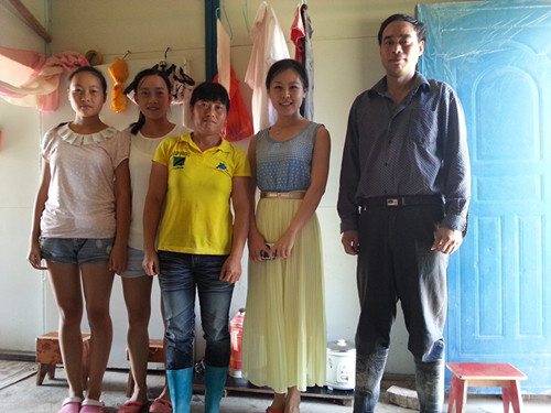 2013年8月16日临近午时的宣城市宣州区,实时温度40度。在市内的一处建筑工地上,外国语学院英语2011-1班陈云云同学的父母仍在坚持做着木工活儿,汗流浃背。“爸,妈,我们辅导员来了!”说话间,陈云云已将前来走访的辅导员肖婷老师领到了父母面前。