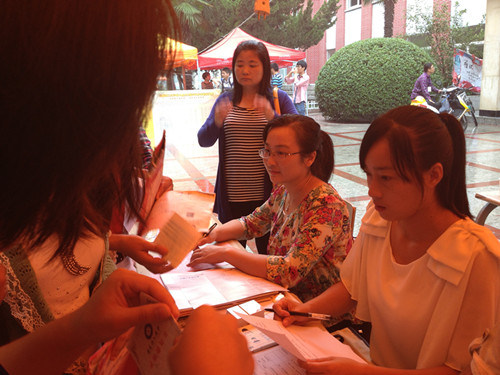 9月11-13日新生报到期间,廖华云等四位2013级新生班主任前往北校区迎新现场,第一时间与同学们见面,并与新生的家长进行沟通,深入了解同学们的家庭情况与成长环境,为今后有效开展工作打下扎实的基础。