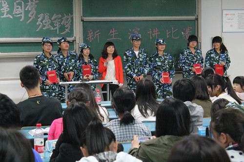 豪情抒胸臆,壮语激共鸣。9月25日晚上七点,医教102教室传来一段段铿锵有力的誓言,外国语学院大一新生“中国梦、强国梦、强军梦”主题演讲比赛在一阵阵热烈的掌声中激情上演。