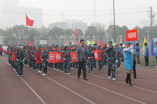 激昂的旋律响起来,矫健的步伐迈起来。伴随着激昂的运动员进行曲,外国语学院60名女生组成的运动员方阵步入赛场,她们个个精神抖擞,英姿飒爽,步履矫健,“凌云赛场、斗志昂扬、巾帼外院、魅力无限”的口号响亮动听,展示外院女生努力拼搏、奋力进取的良好精神风貌。
