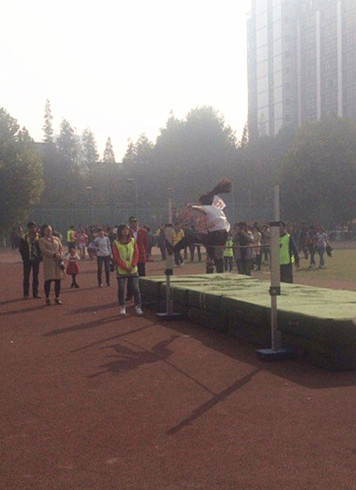 海蕾是英语2012-4班的一名女生,在上一届运动会的跳高项目中凭借1.27米的高度轻松夺冠。这一年里她每周坚持训练,仍然保持着最佳状态。一年之后的运动场上,裁判员一声令下,只见她冲到横杆下,左腿一蹬,右腿一抬,身子一跃而起,像一只飞燕般掠过横杆,动作连贯、干净利落,观众们都情不自禁的为她鼓掌喝彩。她再次以绝对优势拔得跳高比赛的头筹。