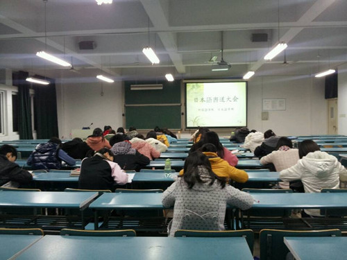 为了让日语专业的同学更好地了解日本文化和学习日语,规范日语文字的书写方式,激发日语学习兴趣,11月19日,外国语学院举办第一届日语书法比赛。2013级日语系全体学生参加活动,日语系主任朱亚青,日语班班主任李梅,专业课教师朱乔、张楠等参加了活动。