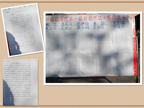 11月27日下午,外国语学院在医教101举行首届日语书法比赛总结表彰大会。学院党委书记石秀光、副书记程秀霞,日语系全体教师出席本次活动。大会由日语班班主任李梅老师主持,日语系2013级全体学生参加了本次活动。