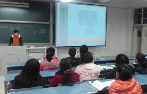 外国语学院2013级新生第一次职业生涯规划课于2013年12月10日晚上七点在西区医教101教室拉开帷幕。外国语学院邀请刚刚在校大学生职业生涯规划比赛中荣获第一名的英语2011-4班孔健梅同学展示了她精彩的职业生涯规划——同声传译,为大一学生带来精彩的职业生涯规划第一课。
