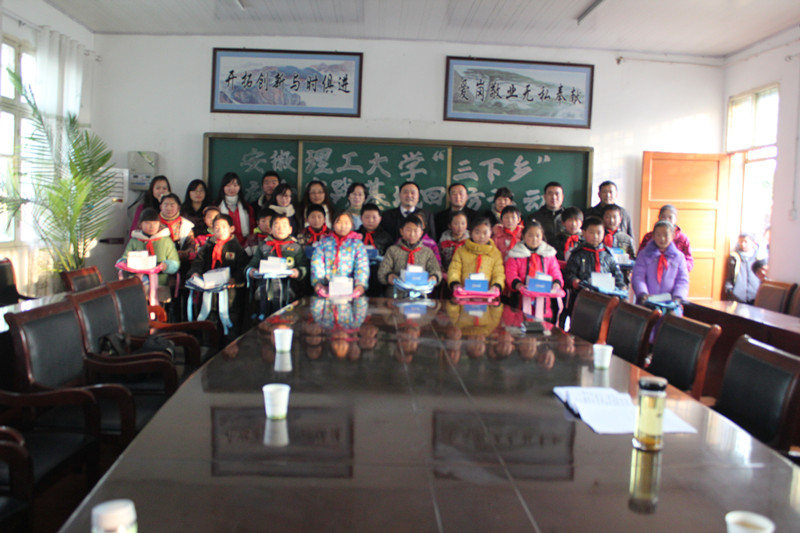蒙城县团县委书记陈晓星、县教育局副局长白君利、双涧镇副镇长李峰、双涧中心小学校长等相关领导热情接待了我校师生一行。简短朴素的仪式上,白君利致欢迎辞时表示,我校师生们热心参与爱心活动,持续关爱留守儿童,架起爱心桥,铺出助学路,不但为社会树立了很好的榜样,同时也将会唤起更多的人士加入其中,将爱心事业长久经营下去,为孩子们的成长共同撑起一片蓝天。陈晓星主持仪式并讲话,表示期待与安徽理工大学保持良好的友谊,在校地共建、校企合作等方面做出有益的探索和尝试。