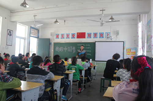 3月17日,外国语学院青年志愿者们在院团委书记张学森老师的带领下来到定点帮扶的谢家集区第二小学开展回访互动,宣传中国梦,与小朋友们话梦想。