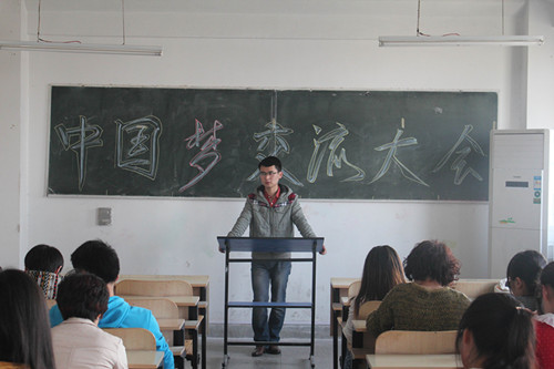 “中国为了实现梦想,每天不断发展着,而我们现在能做的,只有珍惜大好时光,努力实现自己的梦想。只有当我们的梦想实现时,中国的梦,才是每个国人的梦。”英语2012-3班班长陈丽在主持主题班会时慷慨激昂。“生活在这样一个时代和国家,我们是幸运的。我们比历史上任何时期都更接近民族复兴的目标,都更有信心、有能力实现梦想。我们要从自身做起,奋力拼搏,努力实现自己的理想,一个个小小的理想汇聚成广大的中国梦,是我们这一代人的使命和光荣。”英语2011-4班团支书杨雨在微博中如是写道。