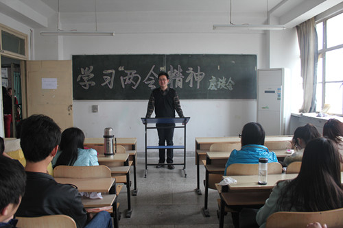 为引导青年大学生关心国家大政方针,加强对“两会”精神的关注和学习,外国语学院于3月21日在行政楼七楼组织院学生会干部、各班级干部深入学习了党的十八届三中全会精神和中央“两会”精神。