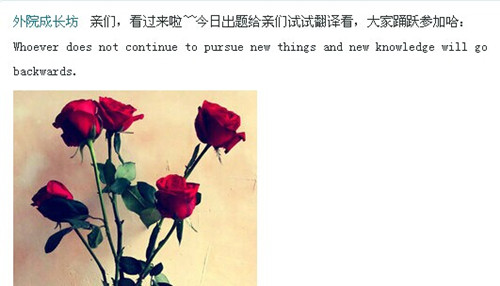 线上学习平台:外国语学院的班主任结合自身专业特长,发挥专业优势,在微博上收集英文短语表达与同学们分享,还利用微博定期开展英汉翻译比赛,学生们积极回复,踊跃参加,尽享线上第二课堂。