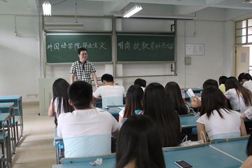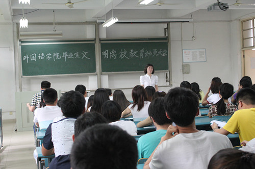 毕业在即,为给毕业生创造一个平安、有序、和谐、文明的毕业环境和氛围,确保毕业生文明离校活动和各项派遣工作的顺利开展,按照学校和学院的工作部署,6月5日下午3点,外国语学院在西区101教室召开2014届毕业生文明离校动员大会。