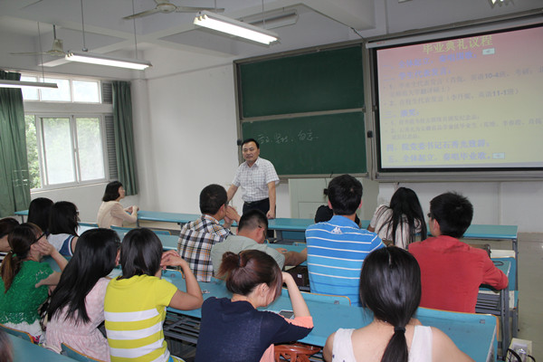 “多年师生情,今昔恨别离;满堂祝福语,只赠学子行”。6月17日上午,外国语学院在医教302教室召开欢送2014届毕业生大会,院党委书记石秀光、副书记程秀霞、毕业班辅导员、2014届全体毕业生和2011级学生代表参加了会议。大会由程秀霞主持。