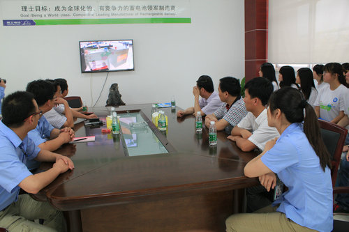 理士国际技术有限公司始于1999年,是专门从事LEOCH(理士)牌全系列铅酸蓄电池的研制、开发、制造和销售的国际化新型高科技企业,香港主板上市企业,已成为中国领先的铅酸蓄电池制造商及最大的铅酸蓄电池出口商,在美国、欧洲、东南亚成立了销售公司及仓库,拥有国内外30多个销售公司及办事处,产品销往全球100多个国家和地区。安徽理士电池技术有限公司主要生产各类蓄电池、车用电池、镍氢电池的生产和销售,属外商独资企业,自产产品70%出口外销,公司先后获得“淮北市高新技术企业”、“2008年度濉溪经济开发区综合考核十强企业”、“ 2008年度淮北市先进创汇单位”、等荣誉称号,并通过了ISO9001质量管理体系认证,是濉溪县优秀企业的代表。实践团队与理士公司双方就建立校企合作相关事宜进行了座谈,安徽理士电源技术有限公司的副总经理宋继轩表示理士的成功离不开高校的人才与技术支持,不仅需要科研技术人才,也需要对外商洽人员,外国语学院的学生正好在企业有用武之地,并热情邀请安徽理工大学学子到公司实习就业,建功立业。石秀光则对理士公司为我校学子提供交流、学习的机会表示了感谢。他指出,科学研究和服务社会是高校的重要职能,两者通过大学生在高新技术领域的就业能得到有机结合和统一,并表达了日后加强进一步合作的期待。