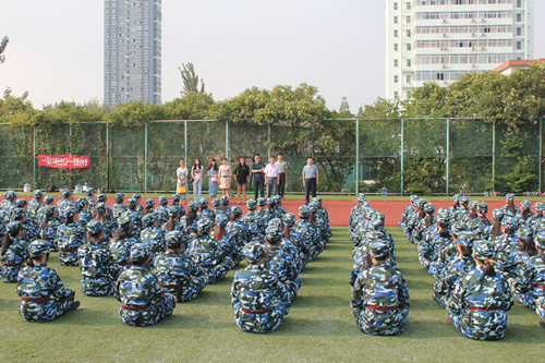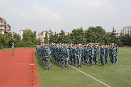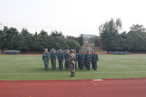训练场上,外国语学院142名大一新生身着崭新的迷彩服,排着整齐的方阵,喊着响亮的口号,个个精神抖擞,意气风发。教官们正严格地指导着新生训练,尽心尽责,一丝不苟。看到如此场景,学院领导和老师频频点头称赞,对他们表示了充分肯定。