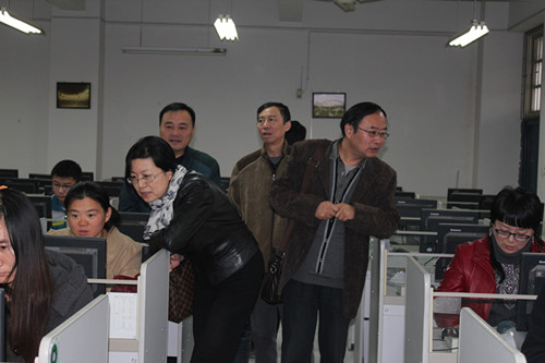 会后,蔡俊萍、朱跃一行还饶有兴致地察看了我校外国语学院外贸实训平台。