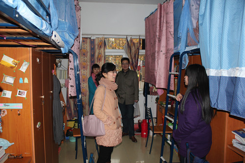 11月28日下午,外国语学院党委副书记程秀霞带领各年级辅导员以及新生班主任深入学生宿舍,开展冬季安全卫生检查。