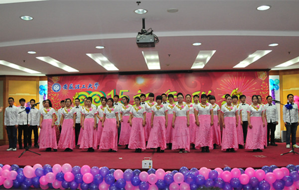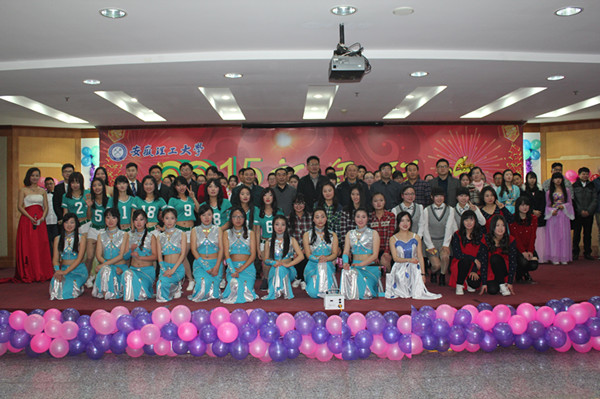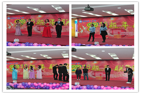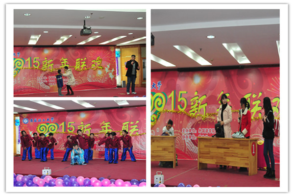 2015年1月10日下午3:00,外国语学院新年师生联欢会在本部9楼报告厅举行。副校长叶醒狮、纪委书记周峰莅临现场,与外国语学院师生共庆新年;校后勤集团总经理张勤春、学生处处长田中良、实验室与设备管理处处长苏嘉银、国际交流与合作处处长闵凡飞、校团委书记赵宁、统战部副部长陈忠琴等职能部门负责同志,与大家一同观看了演出。