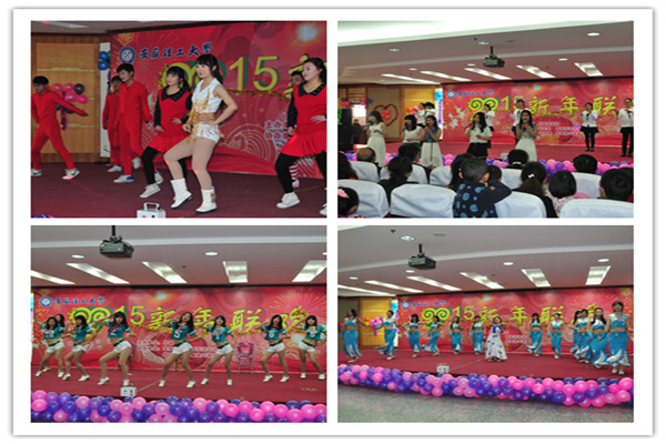 陆蓉等14名学生带来的劲爆动感的开场舞《小苹果》瞬间点燃全场,拉开了新年联欢会的帷幕;任晓伟、许爽爽等带来的歌曲串烧《爱的随想曲》,婉转动听,展现了外院学子不俗的演唱实力。让在场的观众共享青春盛宴。
