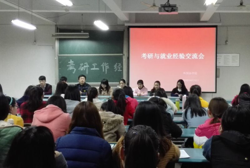 4月10日晚,外国语学院在西区医教101教室举办考研、就业经验交流会,英语专业八位2011级学生代表为2012级同学介绍考研、就业经验。