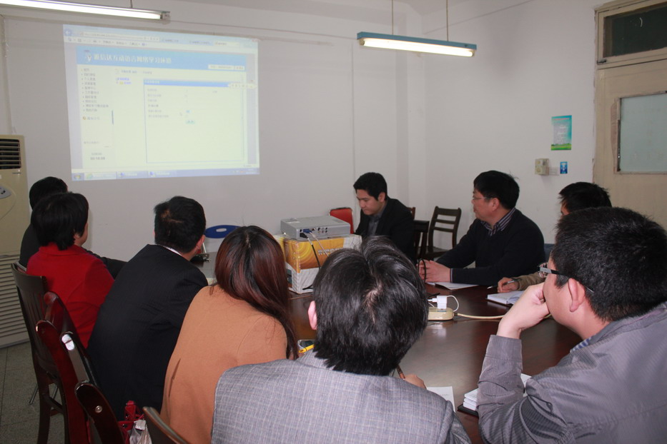 4月13日下午,外国语学院在学院会议室召开培训会,学院领导和各系负责人、教师代表一同学习了雅信达在线学习软件的使用方法。