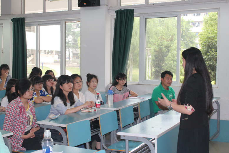 孟瑜首先与同学们分享了她2004年大学毕业后的学习和工作经历,包括在澳大利亚留学三年、在美国做对外汉语志愿者一年和担任多场大型国际会议的同声传译等。在这些饱含着艰辛与汗水、成功与欢笑的经历之后,不变的是对英语执著的热爱和不懈的追求。她告诫学弟学妹们,无论何时何地,都要把专业学扎实,学透彻,只有这样,才能迎接更多的挑战,把握更多的机遇。其次,她介绍了英语专业学习的方法,解释了一些在语言学习中常见的困惑和疑难点,引起同学们的共鸣。最后,就英语专业学生的职业规划和就业前景,她与同学们进行了交流。孟瑜老师活泼开朗的性格和生动有趣的讲解让报告会现场气氛十分活跃,互动不断,现场师生意犹未尽。报告会持续近两个小时,最后在大家热烈的掌声中结束。
