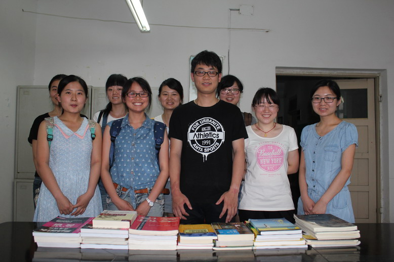 6月1日下午,在学院学生会活动室, 2015届毕业生代表蒋新生、宣伟、姜维等同学把精心整理过的考研复习资料和经典西方文学名著等多种书籍赠与2012级的同学,受到欢迎。赠书之余,毕业生们还向学弟学妹传授了专业课学习经验,鼓励他们努力学习、锐意进取,积极传承外国语学院勤学奋发的拼搏精神。