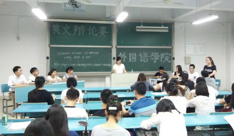 6月7日晚,外国语学院在西区医教402教室举办第三届英文辩论赛初赛,2014级英语专业的各班班主任老师丁大琴、应伟伟、章欢和何云鹏担任比赛评委,4个班级分别派出代表队参加了比赛。