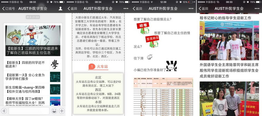 关注外国语学院学生会微信公众号,学院新生可及时了解相关信息