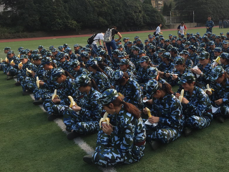 来到训练场,外国语学院参训新生正迎着烈日刻苦练习,石秀光一行等到训练休息的间歇,将学院为新生买好的香甜香蕉带到操场,分发给每一位学生和教官。石秀光怕新生迎着太阳不适,特意嘱咐让新生背对阳光休息。石秀光代表学院向新生们表达了学院对他们的关怀和殷切希望,鼓励同学们要尽快去除在家里的娇气,投入到军训这个大熔炉里,接受各种锻炼,不怕苦,不怕累,培养吃苦耐劳的精神和坚持到底的精神,锻炼严肃认真、一丝不苟、精益求精的品格,圆满完成各项训练任务,并将军训中收获的体会和精神带入到接下来的大学学习生活中,积极进取、奋勇争先,让大学的四年青春更加绚丽多彩。