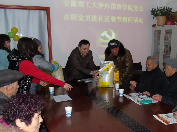 1月28日下午,外国语学院党委书记、院长石秀光带领在职党员代表赴南岭社区慰问困难群众,在春节来临之际,为社区群众送去温暖。