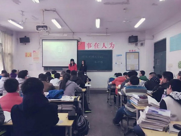 3月17日下午,外国语学院青年志愿者们走进淮南四中,与高一学生班级分享“成长和梦想”。