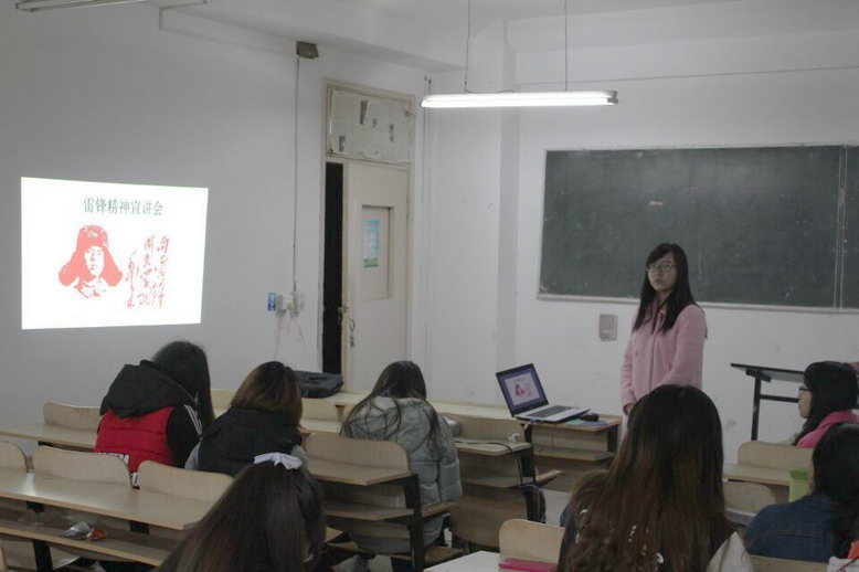 各位团支书以PPT汇报的形式展示了所在班级开展“学雷锋”活动的情况。其中,既有主题班会讨论,又有植树、打扫公交车、清扫火车站等公益劳动,还有去敬老院慰问老人、走进特殊教育学校看望小朋友等人文关怀,活动内容丰富。在谈到活动的意义时,英语15-3团支书李永婧说:“走进淮南特殊教育学校,刚开始与孩子们有交流的困难,我们就用简单的手势或是把话写在纸上来交流,和孩子们一起愉快的做游戏,很快就成了好朋友,短暂的一天时光成了彼此间美好的记忆。积极参与到‘学雷锋’活动中来,不仅培养了我们志愿服务的品质,而且明确了自己的社会责任,收获良多。”