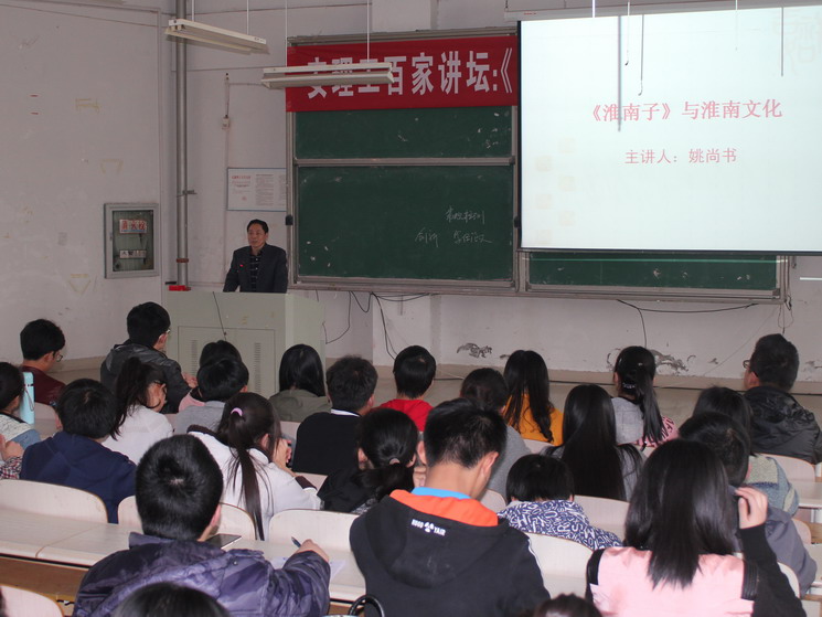 3月30日下午,校党委宣传部邀请淮南市地方办公室主任姚尚书在医教303教室举办题为“《淮南子》与淮南文化”的报告。外国语学院、医学院师生240余人聆听了报告。