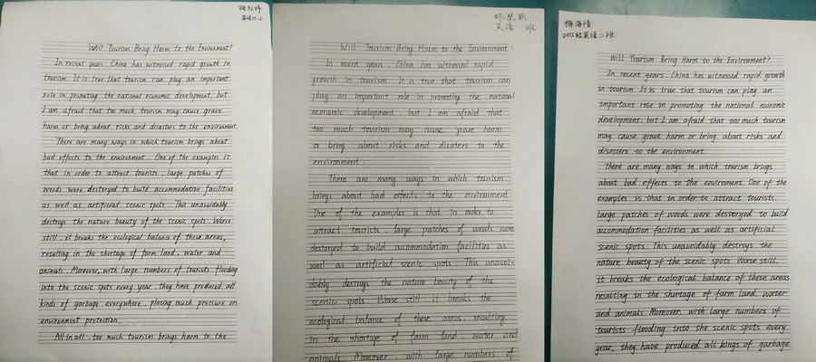本次外文书法比赛将卷面整洁美观、书写内容以及书写格式、流畅度作为评选标准。许多同学为了在比赛中取得好成绩,在课余时间认真练习外文书法,所用功夫可见一斑。参赛选手笔法各异,各有特色。最终,施际婷、梅海情、林慧斯同学获得一等奖,杨斌斌等四位同学获得二等奖,美合日妮萨等五位同学获得三等奖。