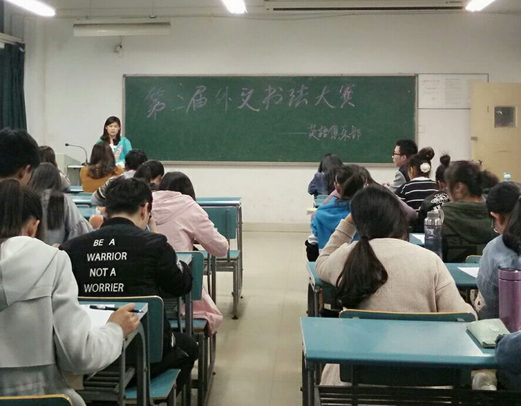 4月27日晚,外国语学院第二届外文书法大赛在西区医教104教室举行,2015级80名学生参加比赛,比赛邀请了该年级班主任张燕、周宁和助理辅导员共同担任评委。
