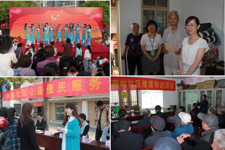 空巢老人既需要精神上的关爱,也需要实际生活中的帮助,师生们多次走访南岭社区的空巢老人,为他们送去精神上的慰藉,帮助其做好打扫卫生、购买年货等一些日常事务,让空巢老人感受到家的温馨与呵护。冬季是糖尿病及并发症高发季节,邀请淮南市第一人民医院泌尿科主任医师齐晓玲,为社区居民作《糖尿病健康教育》的专题讲座;联合医学院、理学院、计算机科学与工程学院为社区开展中小学英语学习方法宣讲、小家电维修、血压测量等基本生活服务,提醒中老年人要保重身体,预防心脑血管疾病;组织学生多次赴社区开展文艺演出,为居民们献上一场场精彩的文化大餐,丰富社区文化生活。