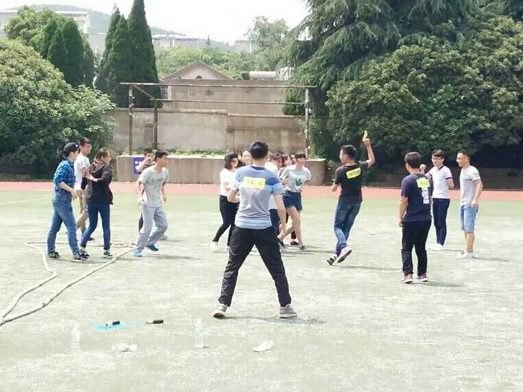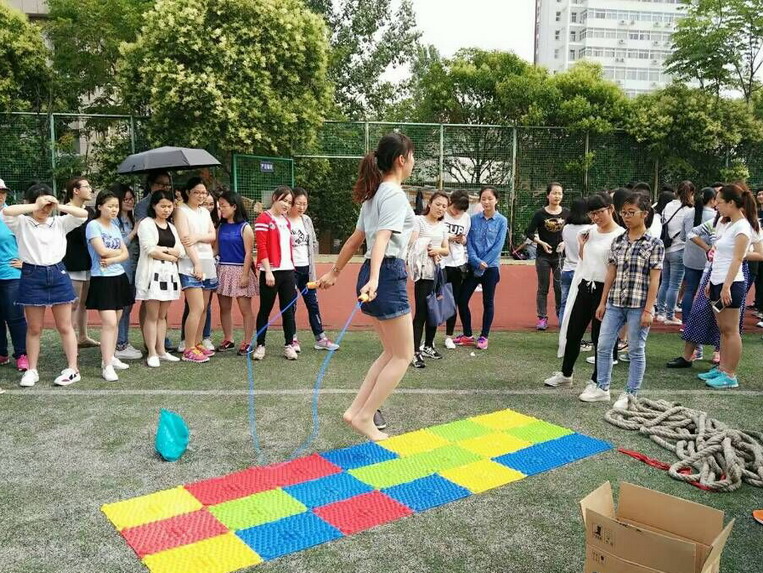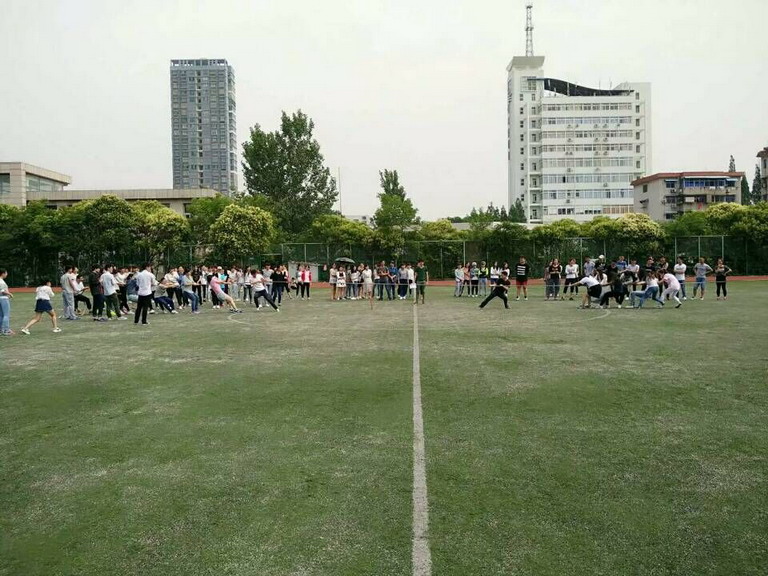 6月5日上午,外国语学院在西区操场举办趣味运动会,设置了指压板跳绳、撕名牌和拔河等三个比赛项目。