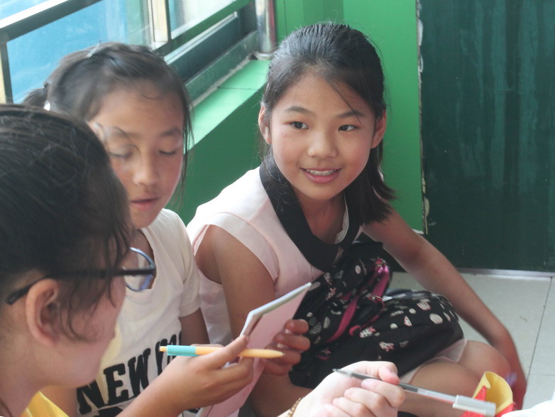 志愿者们刚到,孩子们就兴奋地一起涌了过来。通过报数和“背靠背”等多个小游戏,相互之间逐渐熟悉起来,接下来又进行了英语、语文等科目的教学和文体活动。