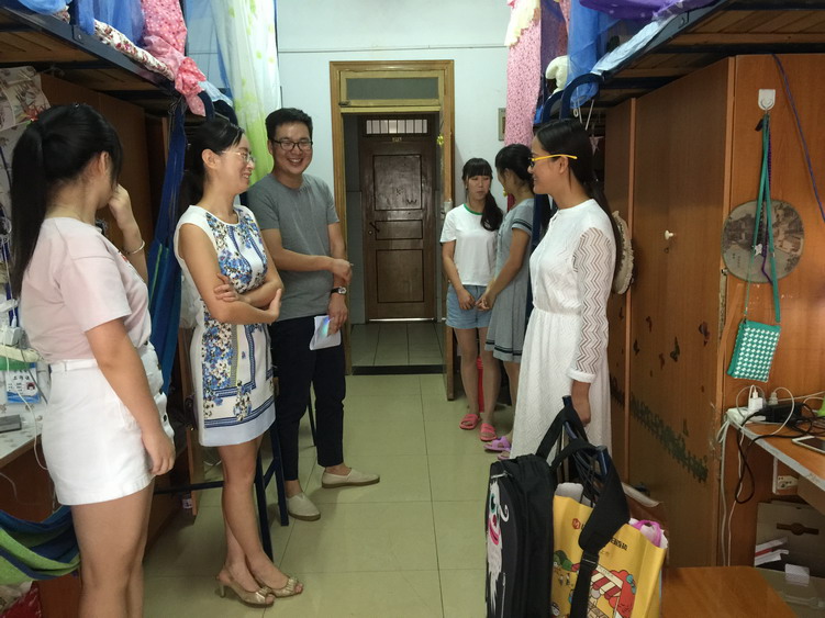 8月31日傍晚,程秀霞带领辅导员深入到学生宿舍,检查寝室安全情况,了解学生新学期思想动态。