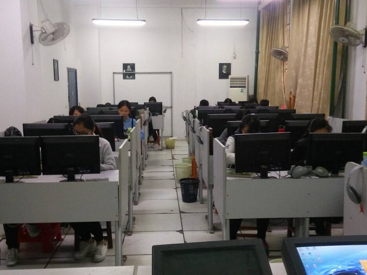学生在学院语音室进行集中线上测试(摄影:张奇才)