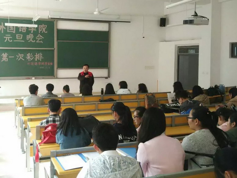 11月6日下午,外国语学院元旦文艺晚会第一次彩排在天工北112教室举行。院党委书记、院长石秀光现场观看了彩排,并鼓励同学们精益求精,把各项准备工作做细做足,以优秀的节目展现外院的风采。整场彩排节目纷繁多彩,不尽相同:有悠扬的独唱,有气势磅礴的集体合唱,还有优雅的舞蹈,更有精彩的相声、小品。台上的演员热情满满,全身心投入演出,台下的观众聚精会神,不时发出热烈的掌声。通过彩排,虽然暴露出了一些问题,但是为每个节目质量的提高积累了意见建议,进一步提高了同学们参与的积极性和自信心。