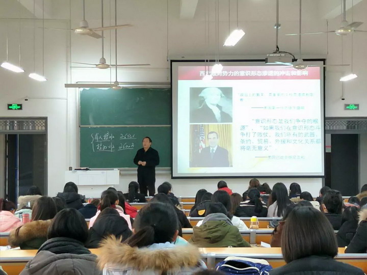 田中良首先为同学们讲解了大学生思想政治教育的意义。他从西方敌对势力的意识态渗透的冲击和影响谈起,让同学们明白大学生思想政治教育面临的严峻挑战;引用毛泽东、邓小平的重要讲话并加以阐释,让同学们认识到理想的重要性;从国家对青年人的期待和各种不良社会现象两个方面,让同学们反思应该怎样度过大学四年。随后,他介绍了我校校史沿革、校友、校园文化、至今取得的成果等,让同学们对母校有了更深入全面的了解。最后,他从“三流与一流”的关系切入,让同学们反思“什么是大学”。并通过“高压线”、“三自一包”、“警戒线”、“发展线”等生动形象的词语,告知同学们“在大学里学什么”以及应该遵守的校规校纪。