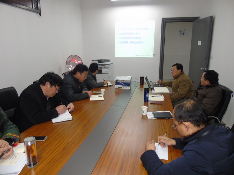 1月19日下午,校党委书记郭永存教授主持的安徽省重大教学研究项目《“Internet+”环境下理工科院校大学英语课程体系创新研究与实践》推进会在外国语学院会议室举行。受郭永存教授委托,教务处处长黄友锐出席会议并讲话。会议由外国语学院党委书记、院长石秀光主持。