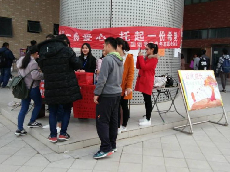 3月18—19日,外国语学院青年志愿者协会在爱苑、仁苑、艺苑举办了爱心募捐活动,为在贫困山区的孩子筹集善款。众多有爱心的同学积极踊跃地参与捐款活动。
