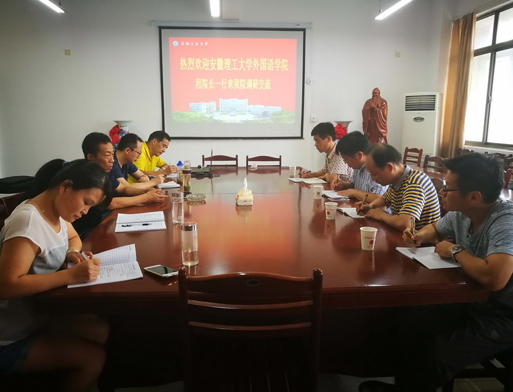 7月13日下午,外国语学院教学副院长程少武带领英语、日语和公共外语系相关负责人赴安徽工业大学外国语学院调研本科教学工作审核评估相关工作。