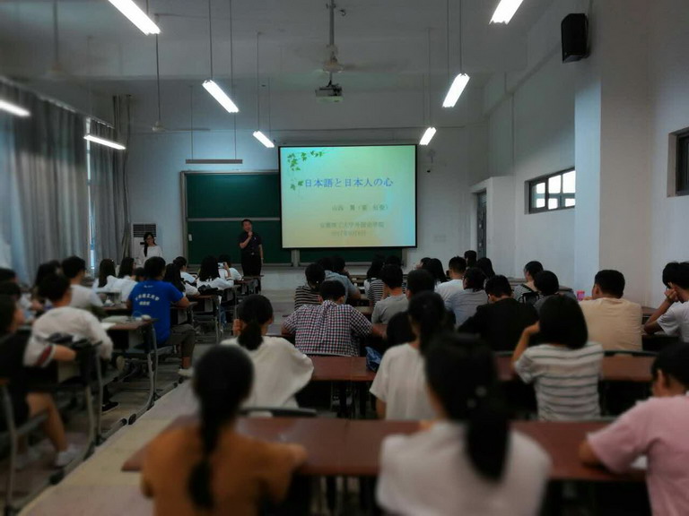 9月8日下午,受科技产业处、国际交流与合作处和外国语学院邀请,日本信州大学三枝有教授、名古屋大学山西翼博士在明理北101教室分别作日本文化专题讲座。日语系师生80余人聆听了讲座。