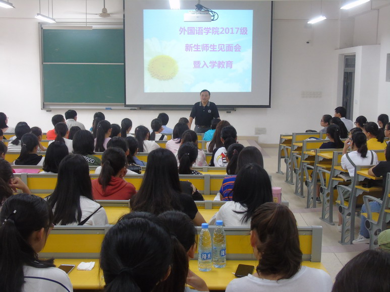 9月9日上午,外国语学院2017级新生入学教育在明理北406拉开序幕。院党委书记、院长石秀光偕学院领导班子、专业负责人、新生辅导员及班主任,与150名新生共同参加了活动。