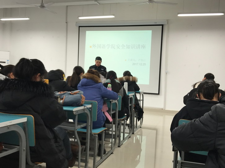 为增强2017级新生安全意识,提高自我保护能力,创建平安校园,12月25日下午两点半,外国语学院在崇智楼B235举办面向2017级新生的大学校园安全知识讲座。本次讲座由保卫处技防与消防管理科科长卢传江执讲,院党委副书记程秀霞主持。