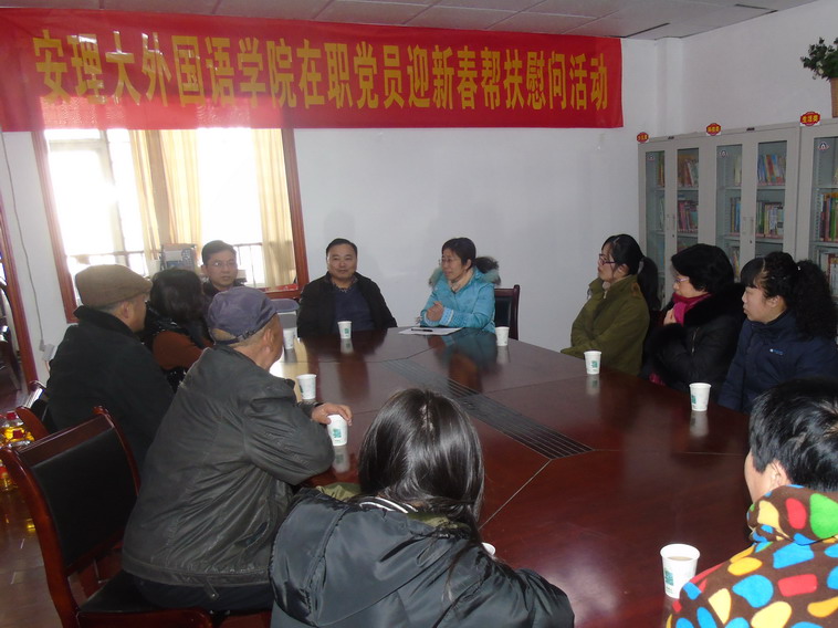 在2018年春节来临之际,2月13日,外国语学院党委书记、院长石秀光携学院3名在职党员,走进南岭社区,看望慰问困难党员和群众,送去粮、油等慰问品。